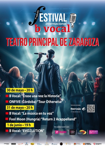 Este festival se consolida como referencia de la música a cappella en nuestra ciudad. Con la colaboración fuera de nuestras fronteras de los festivales internacionales Levante A Cappella Festival (Bari, Italia), el Festival Internacional a Cappella VIVAVOCE (Treviso, Italia) y el Vocalmente A Cappella Festival (Fossano, Italia), B Vocal apuesta por la continuidad en proyectos que favorecen la difusión de la cultura como vehículo de entendimiento y profundización en el desarrollo humano, y la ampliación de las relaciones entre grupos a cappella, creando sinergias fundamentales para el fortalecimiento y desarrollo de este mercado que posee tantas posibilidades. Este festival es un acontecimiento donde descubrir y disfrutar todas las posibilidades que ofrece el instrumento más perfecto, la voz, y para esta 6ª edición hemos querido combinar 3 grupos a cappella con una dilatada carrera artística internacional con otras tantas agrupaciones locales que introducirán cada uno de los conciertos. En definitiva, este Festival supone una propuesta única que sitúa a Zaragoza y a la comunidad aragonesa en un contexto musical internacional.