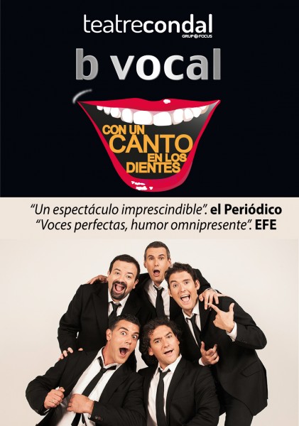Desde el próximo 12 de julio y hasta el 29 del mismo mes, b vocal desembarca en el Teatre Condal de Barcelona con el nuevo espectáculo "Con un Canto en los Dientes". Música, teatro y humor más allá de lo imaginable. Ah, y para los madrugadores hay descuentos!!!