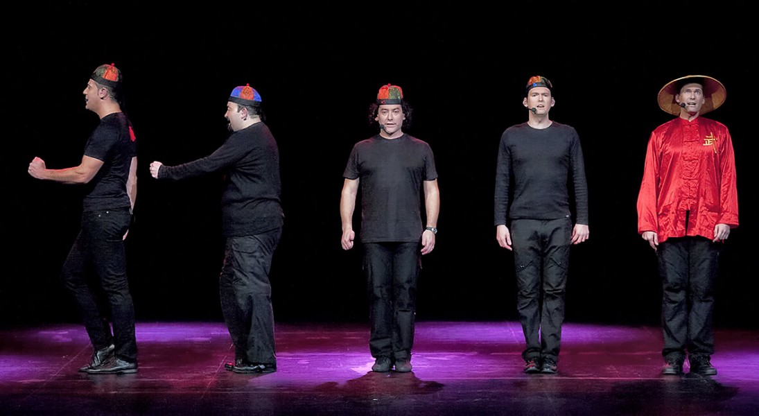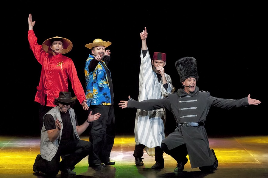 Vozmundiversión es un espectáculo de b vocal en el que se disfruta de un divertido recorrido por las diferentes culturas musicales del mundo, con la voz como único instrumento.
